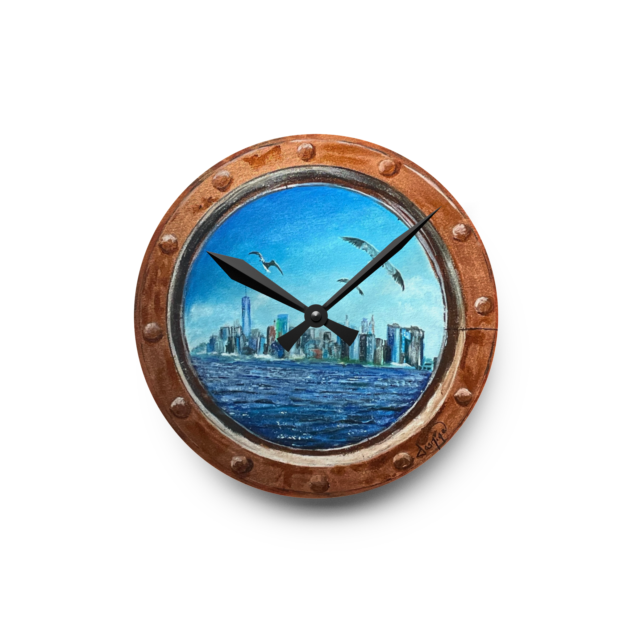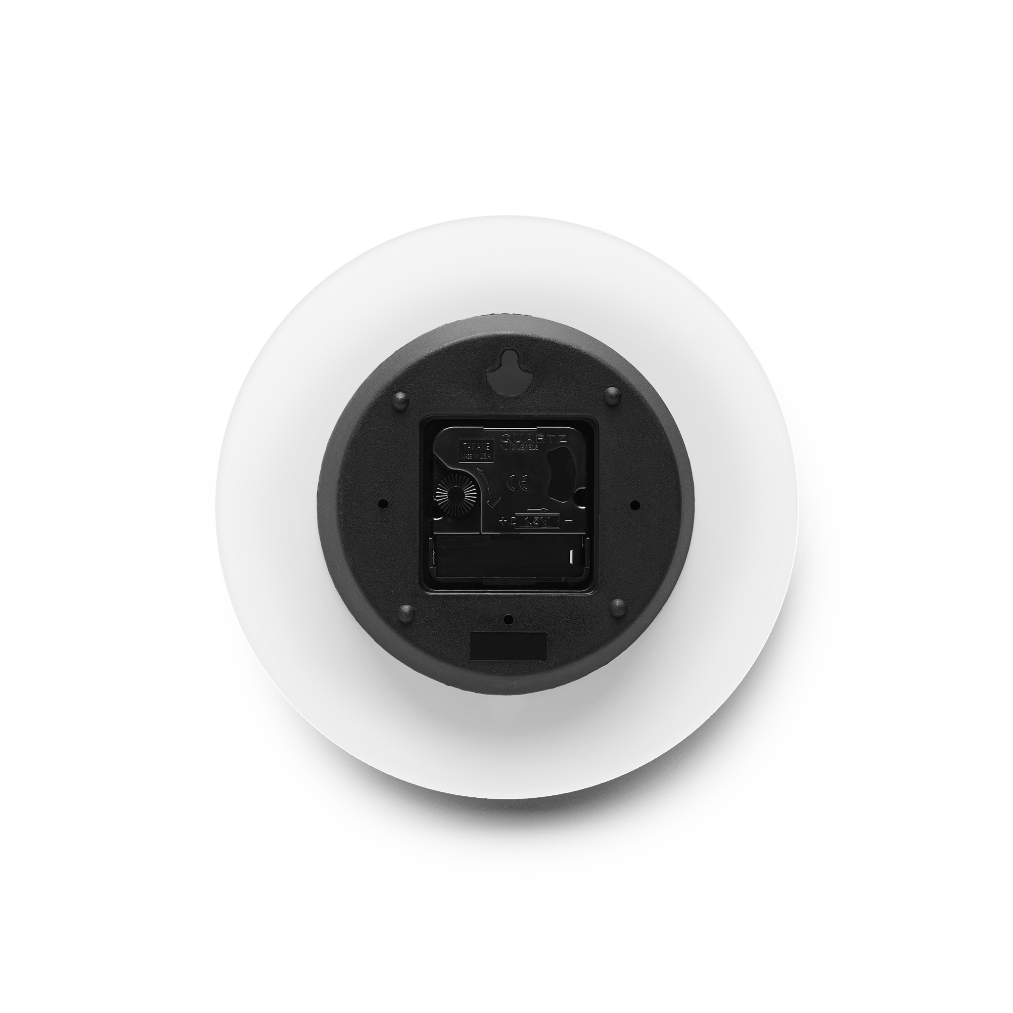 This clock come in a round shape. Each clock has a keyhole at the back for easy hanging on a wall. It is made from an acrylic material that looks like glass but is more durable and sturdy.