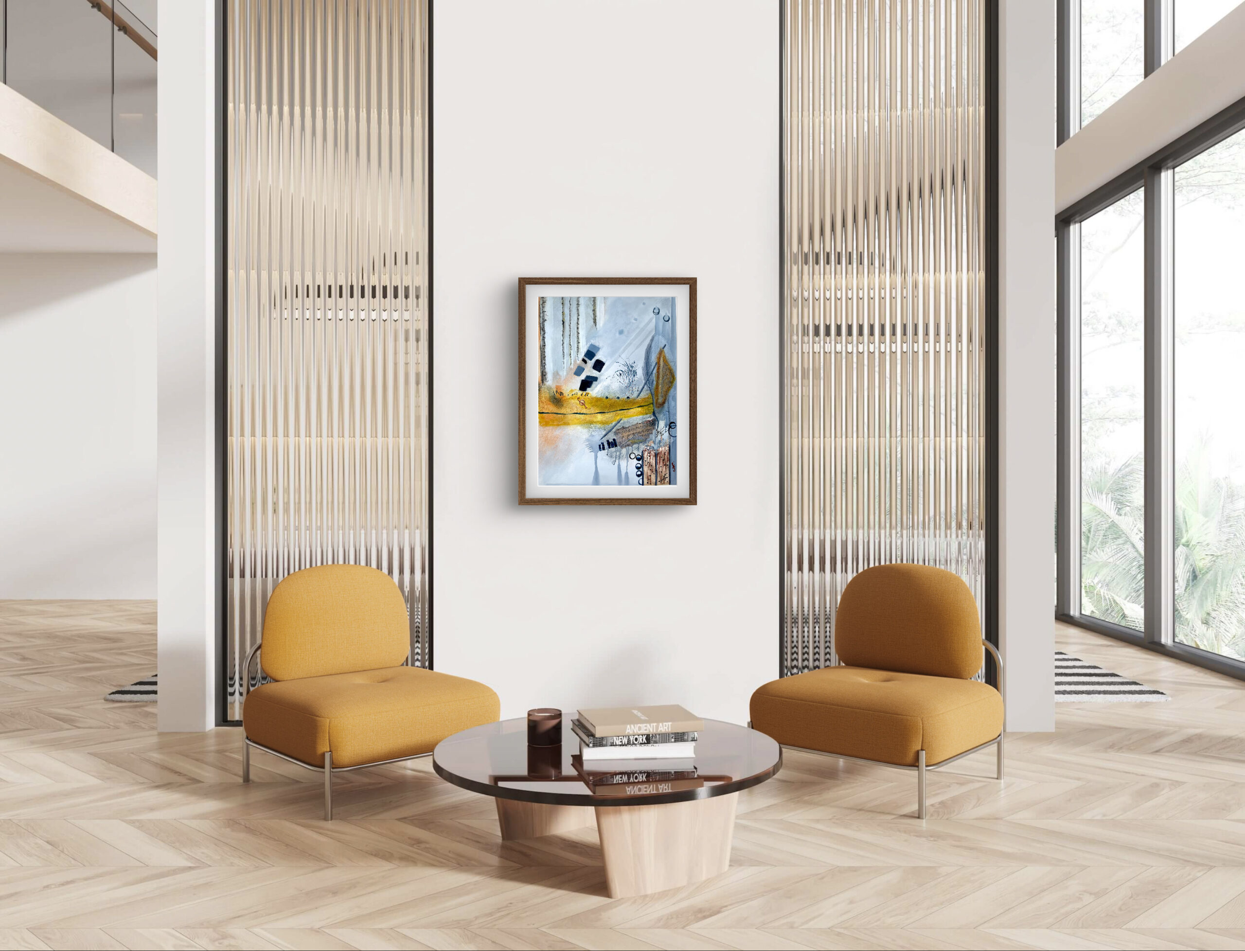 “In strokes of blue and bursts of gold,